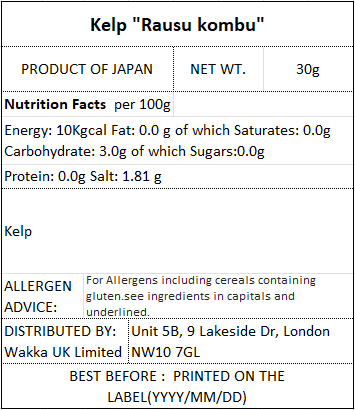 KELP (from Hokkaido Raus)- 羅臼昆布 30g -