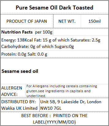 PRESSED SESAME OIL (DARK)- 圧搾純正ゴマ油 濃口 150g -