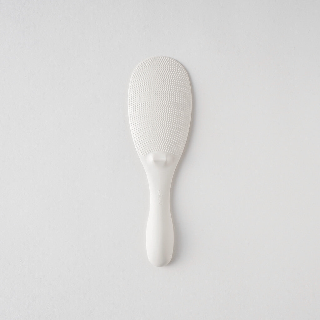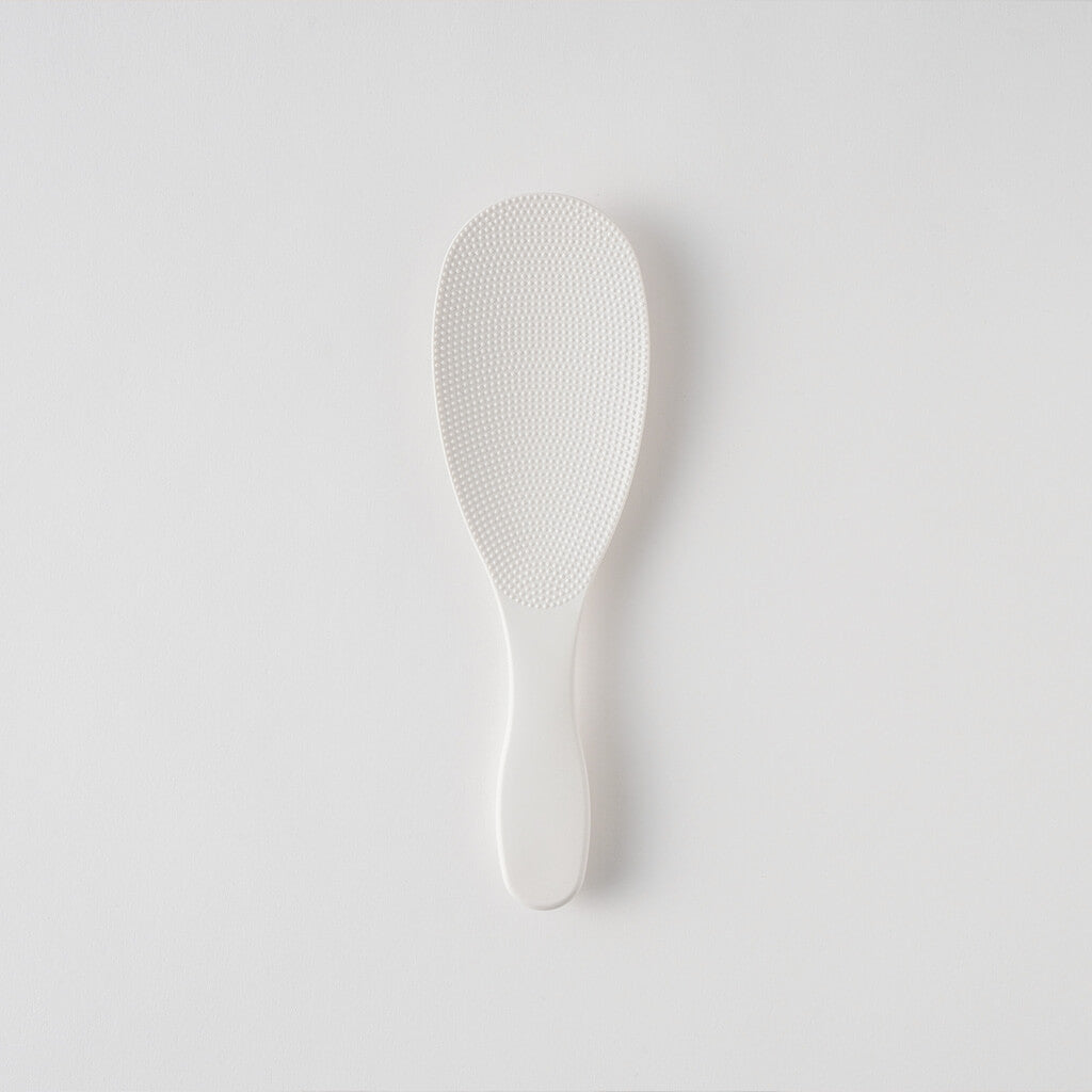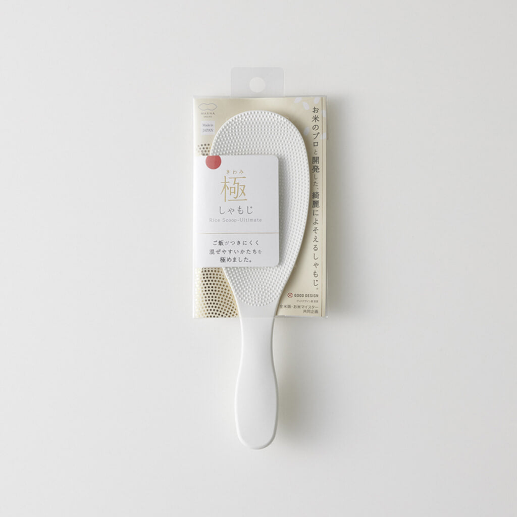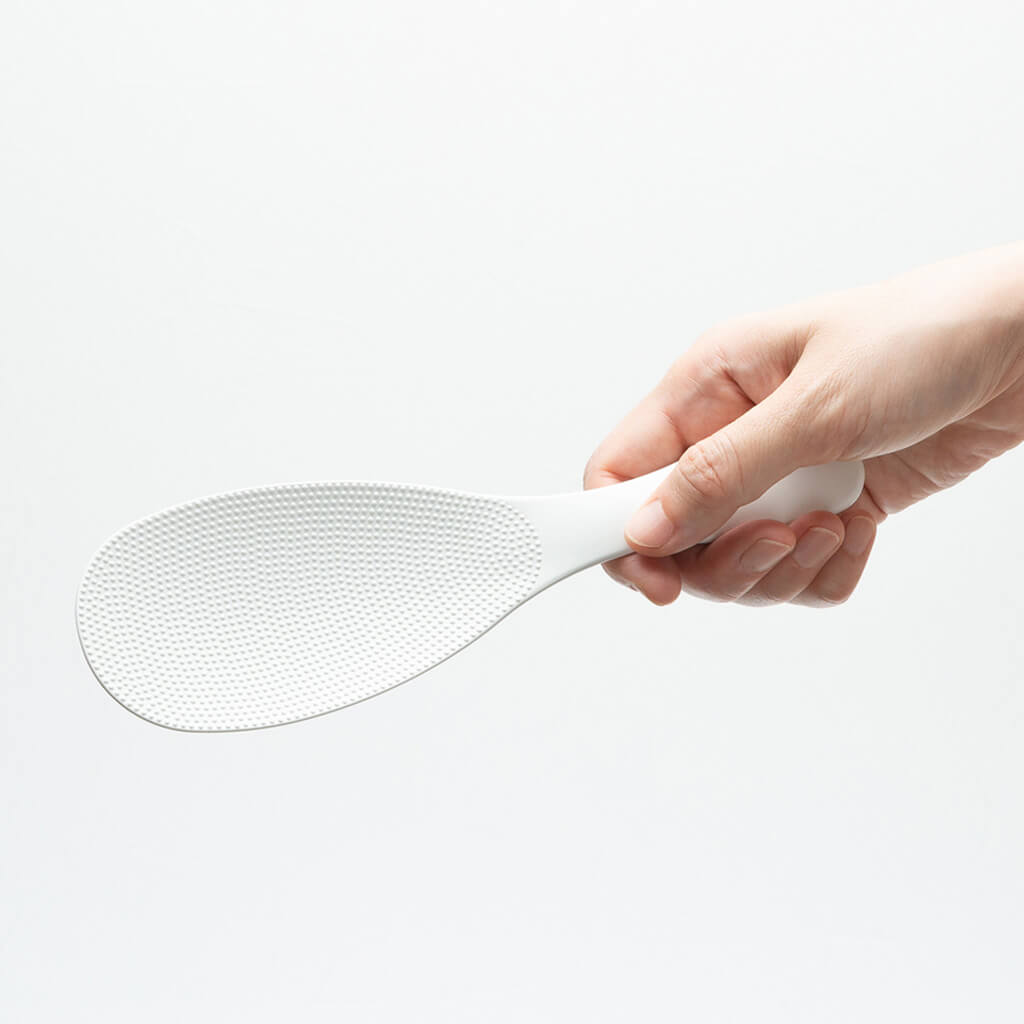 お米のプロと開発。おいしさの秘訣「シャリ切り」のしやすさを極めた、理想のしゃもじです。ご飯がつきにくく、混ぜやすいかたちを追求しました。