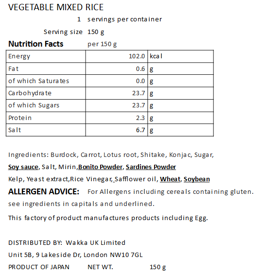 VEGETABLE MIXED RICE - 国産野菜の五目炊き込み御飯の素 150g