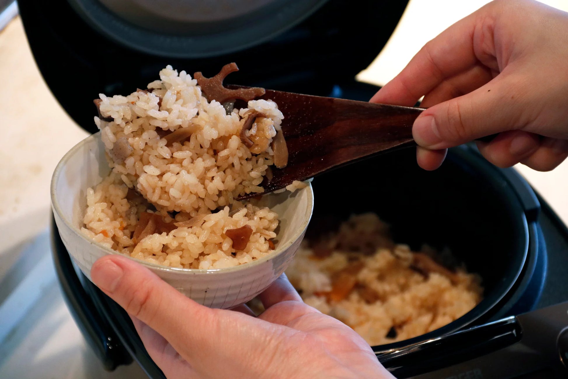 4.普通米同様に炊飯し、炊き上がったら軽くかき混ぜて下さい。