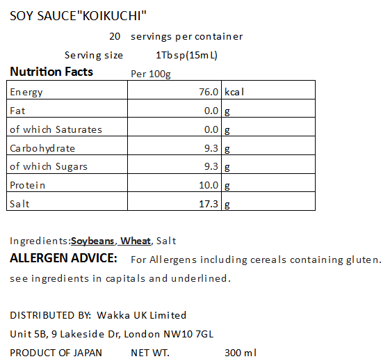 This is a pure soy sauce with no added preservatives or additives. 100% of the soybeans and wheat used are from Ehime Prefecture.